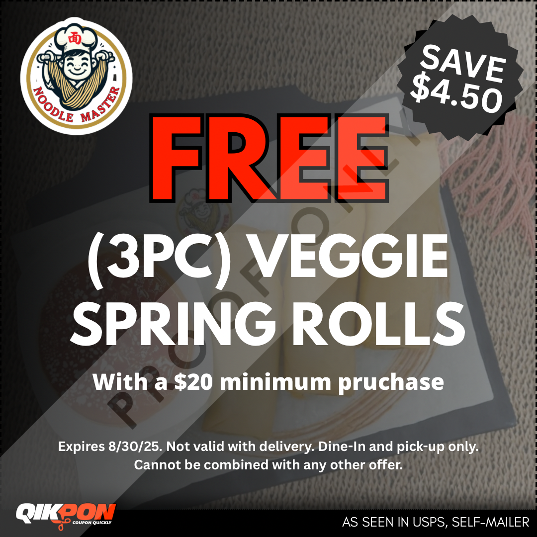 Noodle Master – FREE (3PC) Veggie Spring Rolls